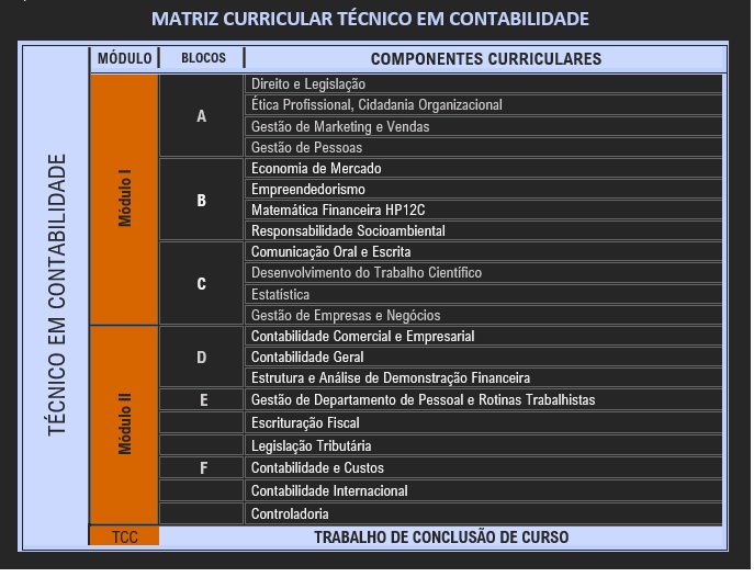 Após a conclusão dos 02 (dois módulos), compostos por 06 (seis blocos), o aluno deve apresentar o Trabalho de Conclusão de Curso, de caráter obrigatório, sob orientação do corpo docente e coordenação e, obtendo êxito em todos os componentes curriculares, e desde que tenha a conclusão do Ensino Médio, receberá o Diploma de Técnico em Contabilidade.
